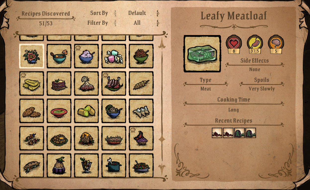 Dont starve together food recipes.
